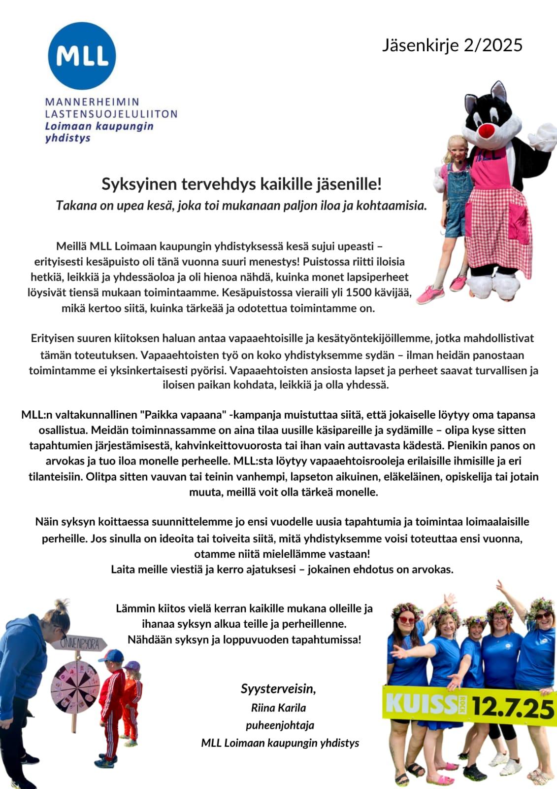 Alta löydät syksyn 2025 jäsenkirjeen.